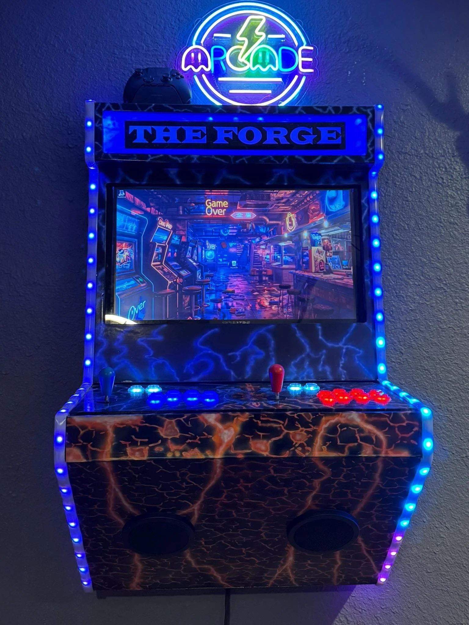 But the saga doesn’t end there — your arcade can be customized to nearly any dimensions to match your space, hardware, lighting, style, or vision. Please review my website www,asgardsforgestudios.com for design service details.