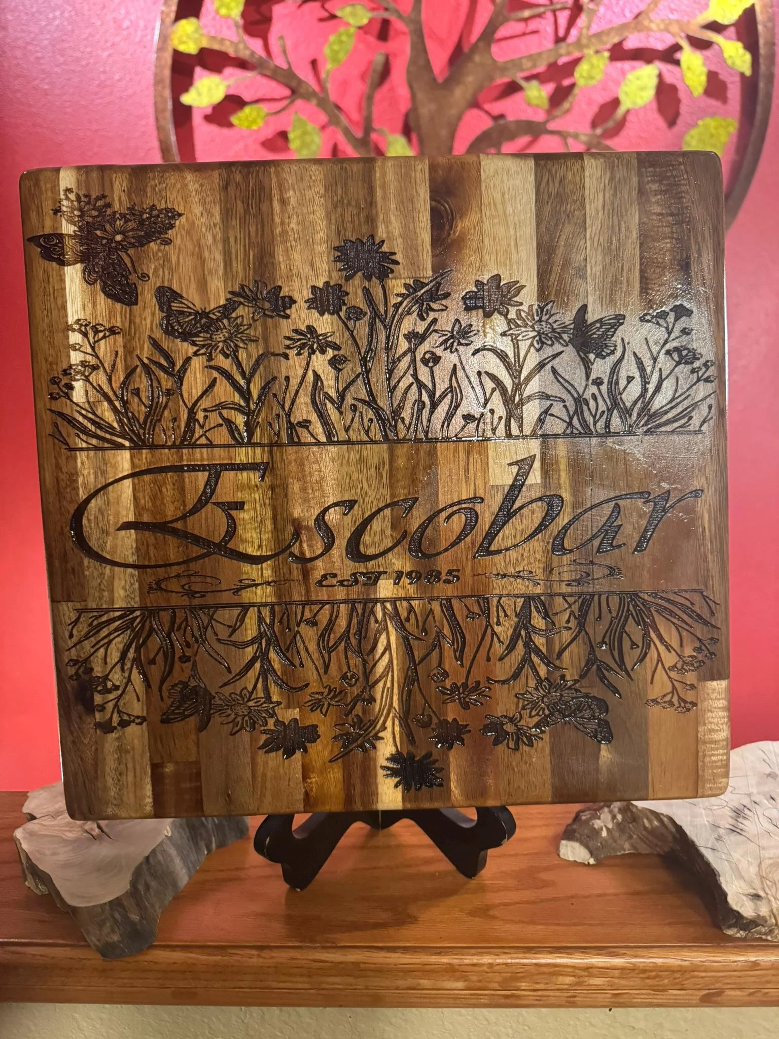 Inlaid Custom butcher block, live edge, or end grain cutting board